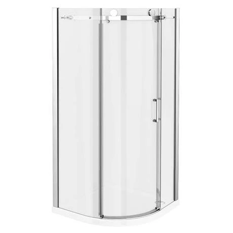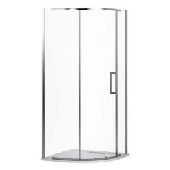 A luxurious designer frameless 1 door quadrant shower enclosure, made from toughened 8mm glass and finished with a stylish chrome frame. Perfect for smaller bathrooms with its unique cutting edge roller design sliding doors, as they don’t swing open. It’s sleek minimalist appearance will work well with any bathroom design.